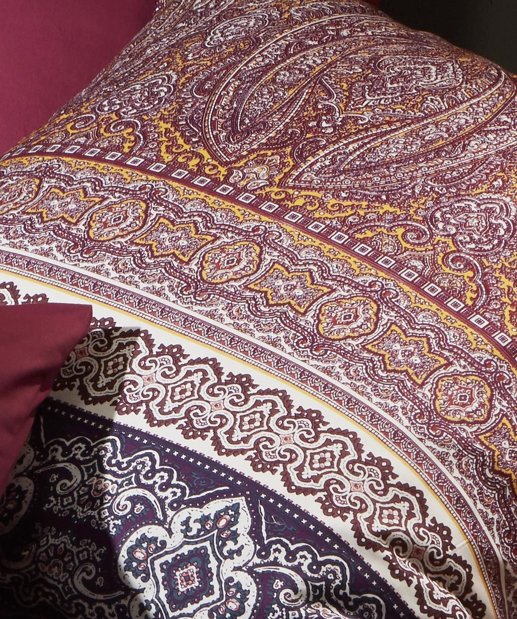 Ein detailreich ausgearbeitetes Paisley Muster wird grosszügig auf die Bettwäsche gelegt. Abgegrenzt wird es durch eine klassische Ornament-Bordüre. Ein wunderbarer Mix aus verschiedenen Mustern perfekt in Szene gesetzt. Die seidig glatte Oberfläche des feinen Mako Satin Gewebes unterstreicht die Hochwertigkeit dieser Bettwäsche.