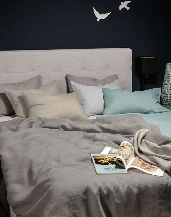 Die Bettwäsche Linum aus 100 % hochwertigem Leinen besticht durch einen harmonischen Vierlang aus den bildschönen Farben Granit, Greige, Argent, und Aqua. Linum ist edel und modern zugleich. Einfach wunderschön!