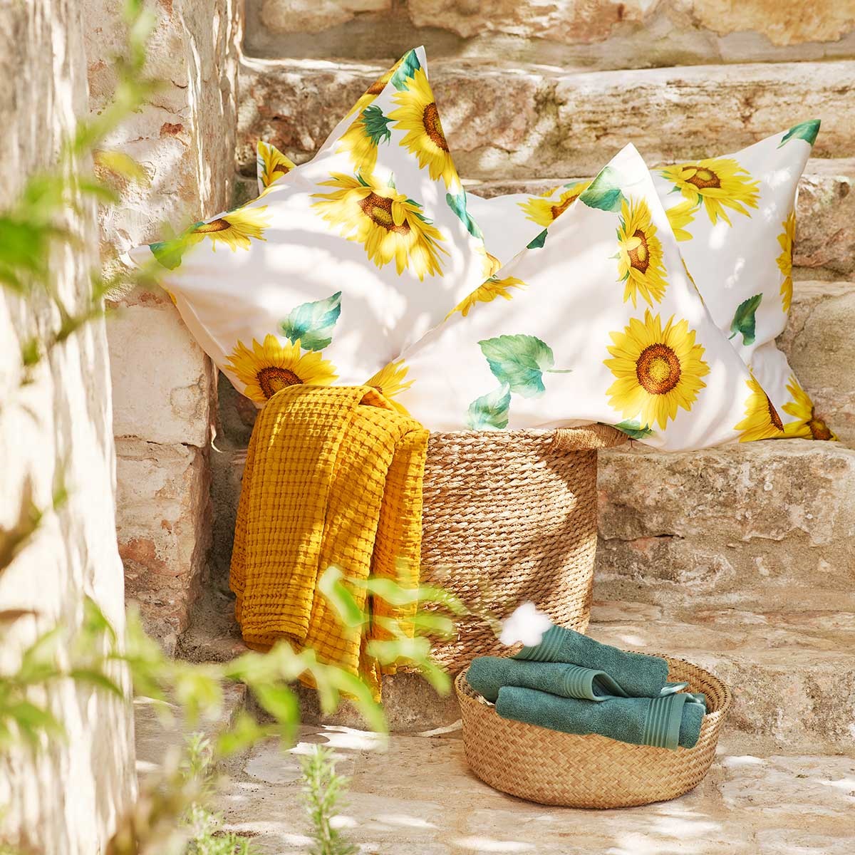 SOLEIL ist unser Sonnen- und Sommergruss an Sie. Die majestätischen Blütenköpfe unserer Sonnenblumen erzählen stolz von heissen Sommertagen, flirrender Leichtigkeit und manch geselliger Gartenparty.