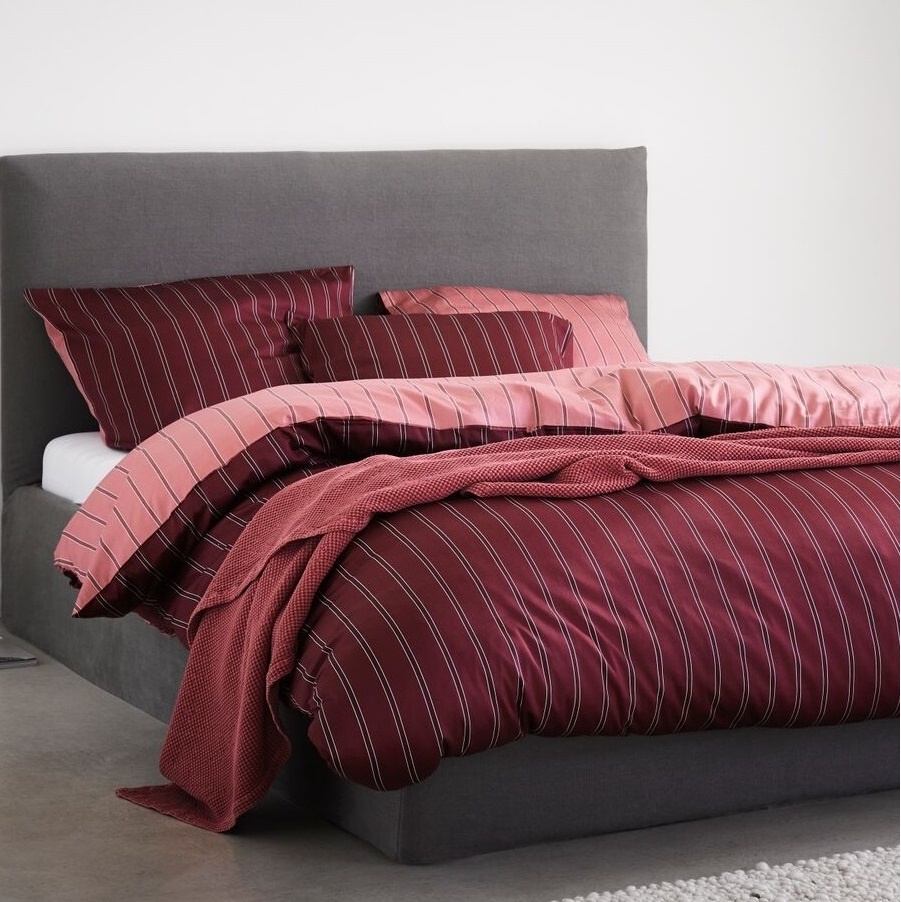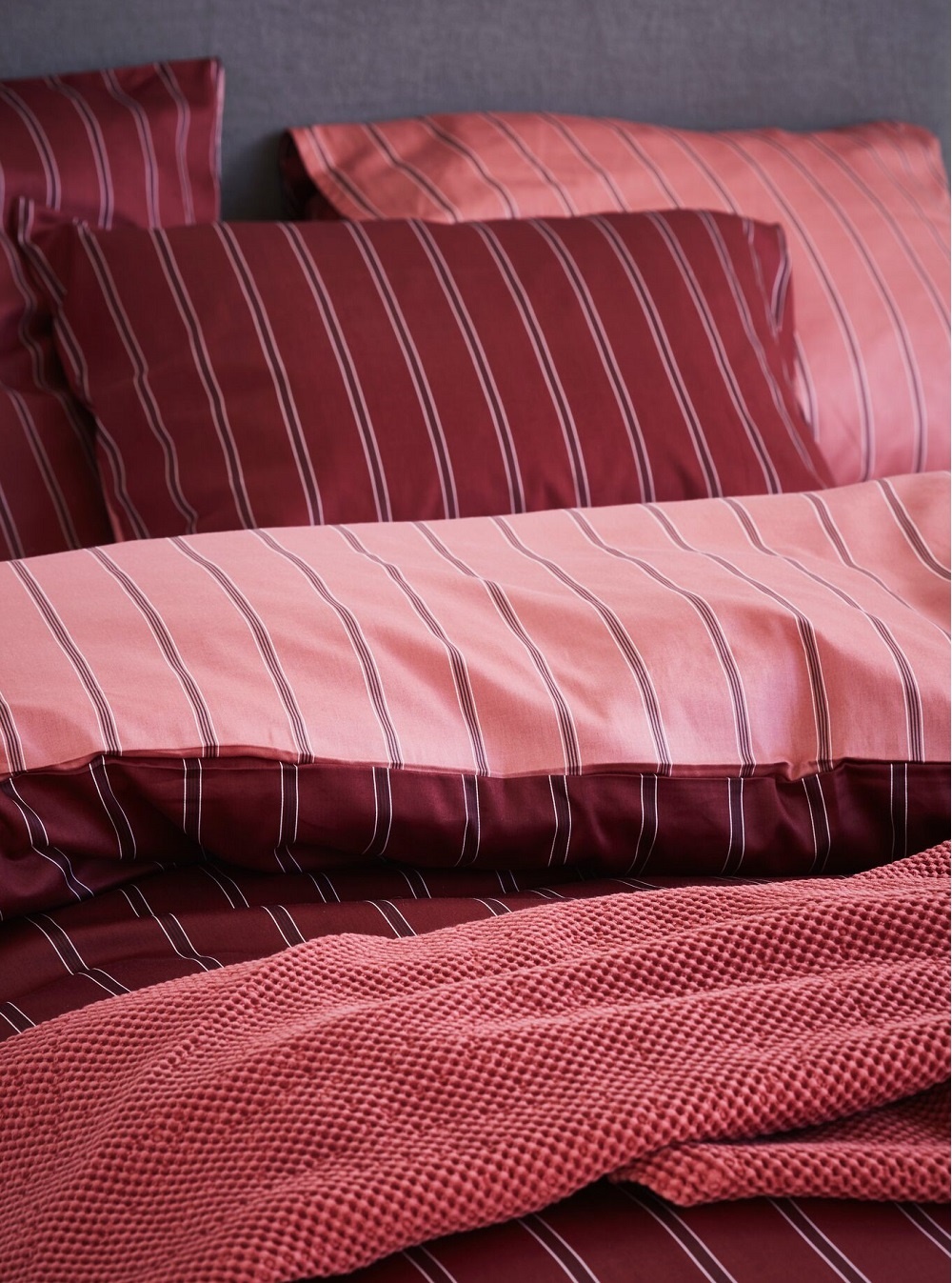 Lieben Sie Rot und Rosa? Dann haben Sie es bei Marc O’Polo ganz nach Ihrem Geschmack! Auf der einen Seite der Bettwäsche entfaltet sich ein feuriges Rot mit gebündelten Streifen in Schwarz und Weiß. Die andere Seite weist ein mindestens genauso hübsches Streifenspiel auf, allerdings auf einem rosa Hintergrund. Für welche Farbe Sie sich auch entscheiden: Wappnen Sie sich für eine Farbexplosion im Schlafzimmer. Aus weichem und geschmeidigem Baumwollsatin.