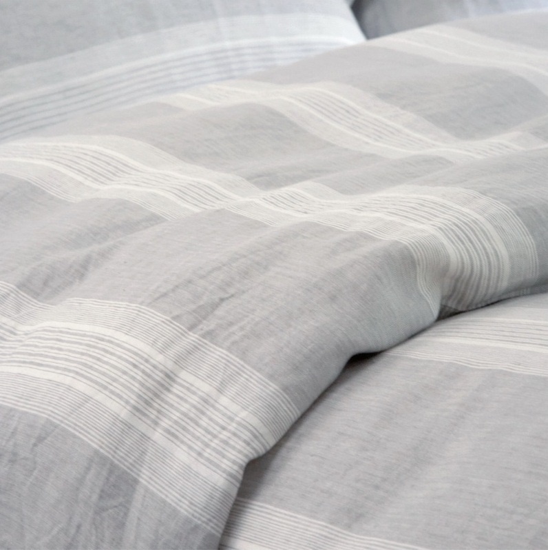 Sisco – gestreifte Leinen-Bettwäsche in silvergrau und weiss. Ein zeitloser Klassiker aus 100% feinstem vorgewaschenem belgischem Leinen.