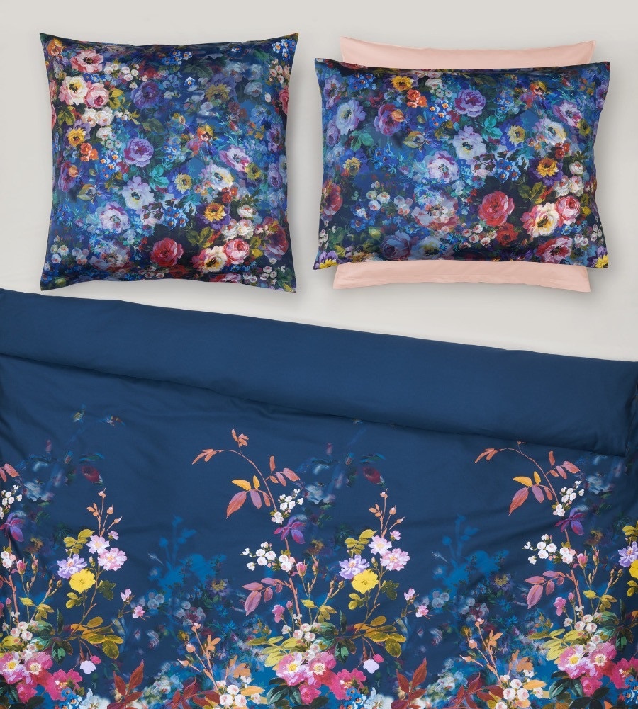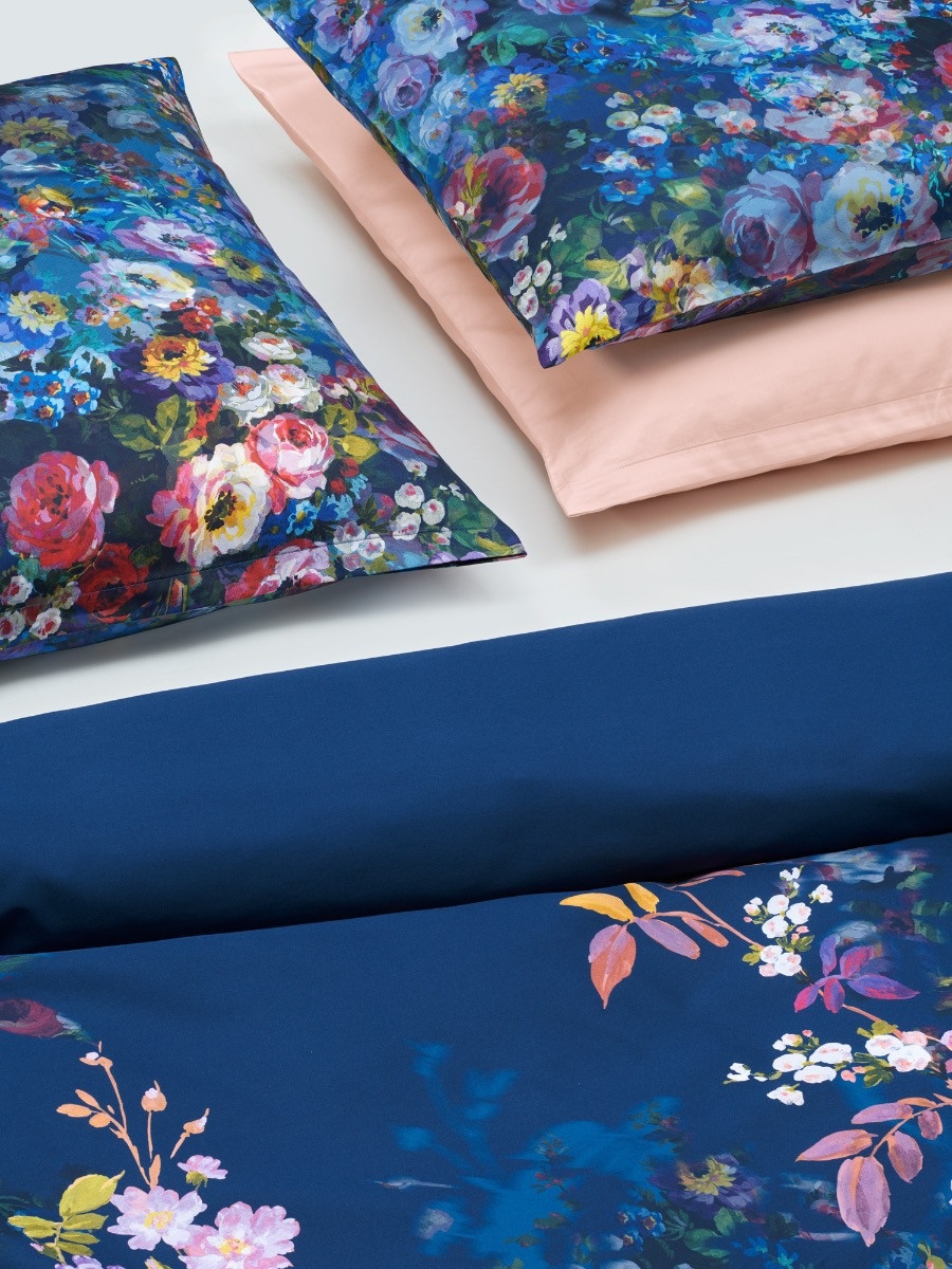 Schlafen » Luxus BettwäscheDas Design CLAUDE ist eine Neuinterpretation vieler Blumenmalereien aus unserem Christian Fischbacher Archiv. Diese prunkvolle Bettdecke in sattem Nachtblau feiert die Liebe zu Blumen in allen Farben der Natur.